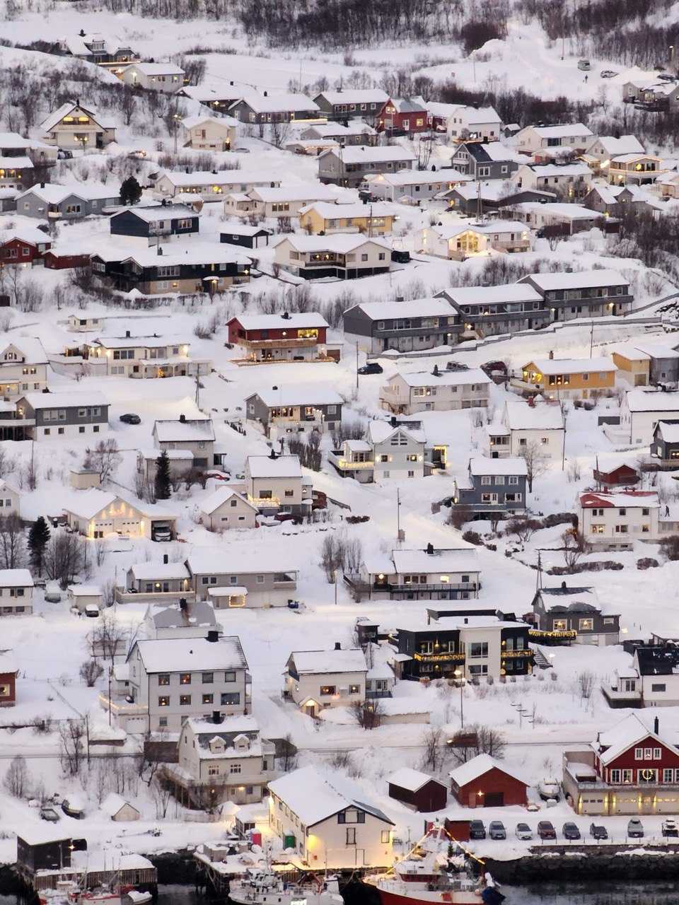 I like the architectural style in Norway. From afar, everything looks composed and tranquil, lights glowing softly in the snow. Up close, the houses feel more personal, cozier and friendlier.